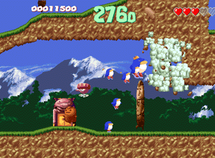 What's more, all this takes place on grass-covered hills and platforms. Remember, I said the penguin